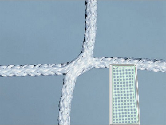 Fotbollsnät för 5-manna mål. Färg vit. Ett kraftigt spansktillverkat kvalitetsnät av 4 mm polypropen. Mycket kraftigt. Passar 3X2 meters fotbollsmål eller handbollsmål eller mindre med max djup mellan 80-100 cm vid botten och 80 cm vid toppen. Maskstorlek på 10 cm. Knutfritt, hög hållfasthet. Pris per 1 st.